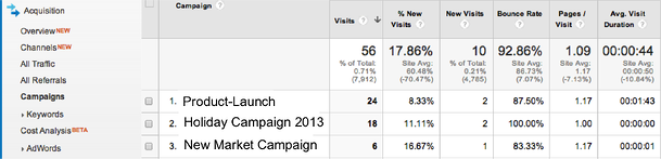 If you've set up your tracking URLs properly, you'll be able to see how many visits your campaign generated in the acquisition menu of Google Analytics, as shown in the image below. Sign in to Google Analytics, click 'Acquisition' in the left column, and then click 'Campaigns' to see your campaign traffic.